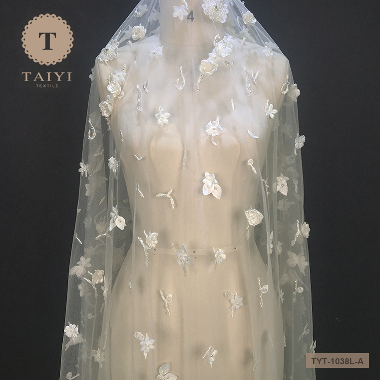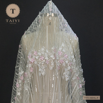 臺藝獨(dú)特的串珠蕾絲刺繡面料